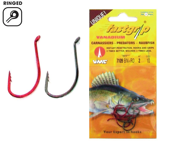 The first hook point with three microbarbs, including an upper barb close to the point that all but guarantees a swift hookset. Offers 15% more penetration power than standard hook points. The VMC® Octopus style forged from Vanadium® steel with an offset, turned up eye is the ultimate choice for live-bait fishing for trout, salmon, walleye or any fish requiring instant and effortless point penetration.
