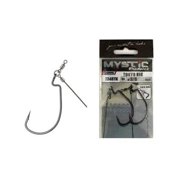 VMC Mystic 7348TK Tokyo Rig. As effective as it is versatile, the VMC Tokyo Rig is suitable with an almost endless range of soft plastic lures: built around a solid, one-piece ring, the VMC Tokyo Rig features a strong wide gap hook with a 3-degree offset, which ensures solid hook penetration in the hook-setting. Along the bottom, the VMC Tokyo Rig features a wire form that is attached with a premium rolling swivel. This non-terminated wire form allows anglers to simply apply the desired weight and bend the wire upwards to lock it in place. So whether you’re slipping it in and out of shallow grass, or methodically dragging it along deep ledges, the VMC Tokyo Rig offers easy customization, and a unique design that will undoubtedly fool discerning predators