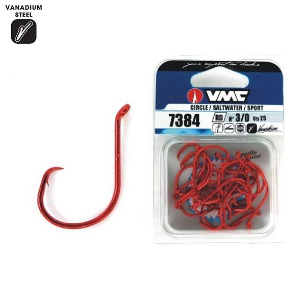 Το κυκλικό αγκίστρι VMC 7384 TR είναι κατασκευασμένο από Βανάδιο. Προσφέρει 25% μεγαλύτερη αντοχή σε σχέση με τα υπόλοιπα αγκίστρια. Κατάλληλο για να δολώσετε ζωντανό δόλωμα σε γλυκό ή αλμυρό νερό.
