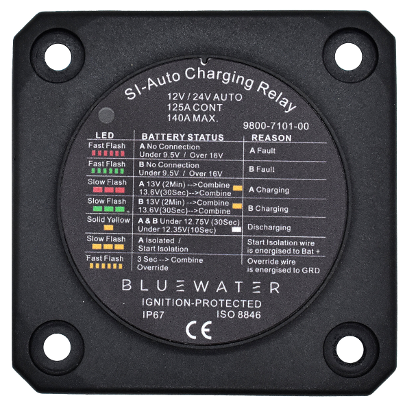 Το ρελέ αυτόματου συνδυασμού μπαταριών (ACR) της Αμερικάνικης εταιρείας BLUEWATER επιτρέπει τον έξυπνο χειρισμό δύο μπαταριών από το altenator ως 120Α για ασφαλή και αξιόπιστη παροχή ρεύματος .