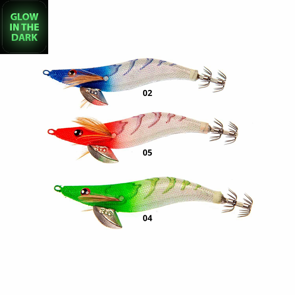 Μήκος: 3.0" Βάρος: 15 γρ. Βύθιση: 3.5 sec/m Έντονη λάμψη στο σκοτάδι και σε συνθήκες χαμηλού φωτισμού Υδροδυναμικός Σχεδιασμός Ρεαλιστικοί Χρωματισμοί Ματάκια 3D Extra Sharp Squid Hooks