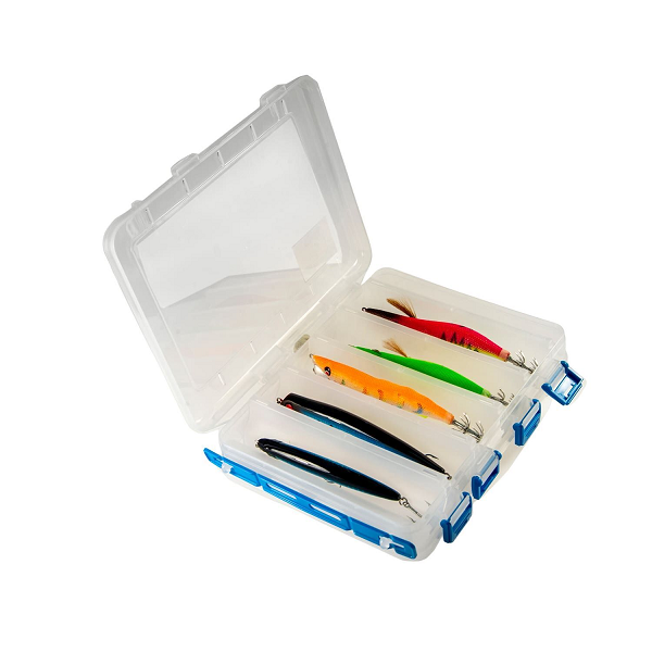 Διαστάσεις κασετίνας: 21x16.5 x4cm Θέσεις ανά πλευρά: 5 Για τεχνητά δολώματα ως και 14 εκατοστά Ανθεκτικής κατασκευής Κουμπώματα ασφαλείας Χερούλι μεταφοράς Διαστάσεις: 24.5 x 20 εκ.