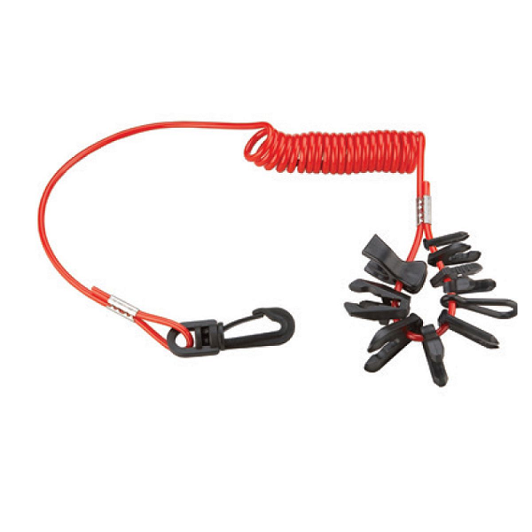 Περιλαμβάνει ΔΕΚΑ ΚΛΕΙΔΙΑ τα οποία ταιριάζουν σε όλα τα χειριστήρια των μηχανών Johnson, Evinrude, Mercury, Yamaha and Honda. Διαθέτει περιστρεφόμενο άγκιστρο για αποφυγή μπλεξίματος του σπιράλ.