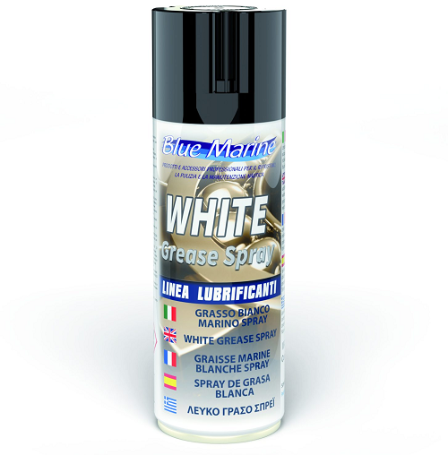 Το WHITE GREASE SPRAY είναι γράσο λιθίου με προσθετικό ψευδαργύρου και τιτανίου, το οποίο προσδίδει πολύ υψηλή συγκολλητικότητα και αντοχή σε φρέσκο και αλμυρό νερό. Συνίσταται για λίπανση οργάνων, όπου γενικά απαιτούνται οι παραπάνω ιδιότητες. Θερμοκρασίες λειτουργίας από -20?C έως 160?C. Να φυλάσσεται μακριά από παιδιά.