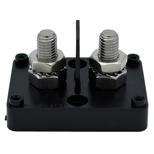 Μπάρες διακλάδωσης βαρέως τύπου της Αμερικάνικης εταιρείας BLUEWATER, διαθέτουν δύο ακροδέκτες με αφαιρούμενο πλαστικό διαχωριστικό, το οποίο επιτρέπει την ηλεκτρική απομόνωση των δύο πόλων. Η απομάκρυνση του μεσαίου πλαστικού διαχωριστικού δίνει τη δυνατότητα σύνδεσης των δύο ακροδεκτών μέσω συμπαγούς συνδέσμου από καθαρό χαλκό, μετατρέποντάς την σε μία ενιαία γραμμή διανομής ισχύος. Πρόκειται για ιδανική λύση για συνδέσεις υψηλής έντασης, όπως η σύνδεση του κινητήρα με το ηλεκτρικό σύστημα του σκάφους, αλλά και γενικότερα σε απαιτητικές θαλάσσιες ή βιομηχανικές εφαρμογές.