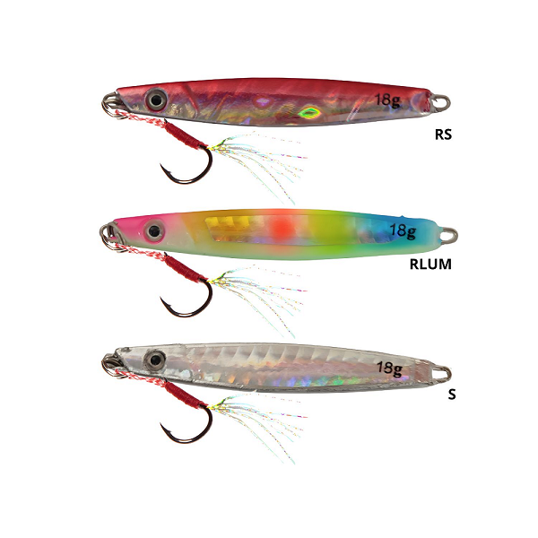 Πλανάκι για Jigging Βάρος: 18 γρ Έντονοι χρωματισμοί με εφέ λάμψης Έτοιμα, με δεμένο αγκίστρι