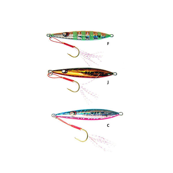 Πλανάκι με υδροδυναμικό σχεδιασμό για Jigging Βάρος: 25 γρ Ρεαλιστικοί χρωματισμοί με εφέ λάμψης Με δεμένο μονό αγκίστρι