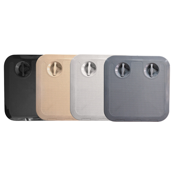 Τα πορτάκια EVAL, ορθογώνια ή τετράγωνα, είναι κατασκευασμένα από ανθεκτικό A.B.S. πλαστικό, με UV για μεγάλη αντοχή στην ηλιακή ακτινοβολία, σχεδιασμένα με αντιολισθητική επιφάνεια ,όλα αυτά, τα καθιστούν κατάλληλα και για εξωτερική χρήση. Επίσης τοποθετούνται ,σε κάθετη ή οριζόντια θέση, ώστε να επιτυγχάνεται η πρόσβαση σε διάφορους αποθηκευτικούς χώρους πάνω στο σκάφος. Τα πορτάκια EVAL είναι με άνοιγμα 1800 και με καλυμμένες τις υποδοχές για τις βίδες. Ανάλογα με το μοντέλο, έχουν μία ή δύο λαβές και υποδοχή για κλειδαριά (κωδ. 3367), ενώ περιλαμβάνουν και φλάντζα για απόλυτη στεγανότητα. Διατίθενται σε λευκό, γκρι, μπεζ και μαύρο χρώμα.