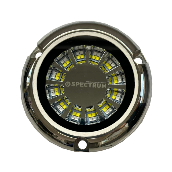 Υποβρύχιο φωτιστικό LED δίχρωμο SPECTRUM, κατασκευασμένο από υψηλής ποιότητας χυτό ανοξείδωτο ατσάλι θαλάσσης 316L. Διαθέτει σύστημα προστασίας κραδασμών και ενσωματωμένο Driver. Είναι χαμηλού προφίλ και έχει προστασία υπερθέρμανης. Μπορεί να τοποθετηθεί και εκτός νερού. Για την ορθή χρήση του πρέπει να συνδεθεί με ένα διακόπτη τύπου ON/OFF. Δείκτης αδιαβροχοποίησης ΙΡ68. Πιστοποιήσεις: CE & RoHS.