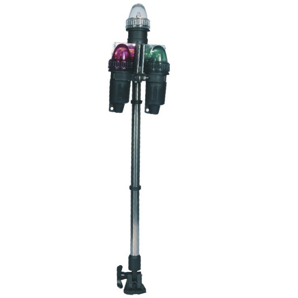 Τρίφωτοι φανοί ναυσιπλοΐας με ιστό κατάλληλοι για σκάφη με συνολικό μήκος ως 12μ. Ανοξείδωτοι, κατασκευασμένοι από πολυκαρμπονάτ και ενισχυμένο πολυαμίδιο και είναι εγκεκριμένοι σύμφωνα με COLREG72, τον Διεθνή Κανονισμό για την αποφυγή συγκρούσεων στη θάλασσα. Περιλαμβάνουν λάμπα 12V – 10W. Εγκεκριμένοι από: HMMM Hellenic Ministry of Merchant Marine.