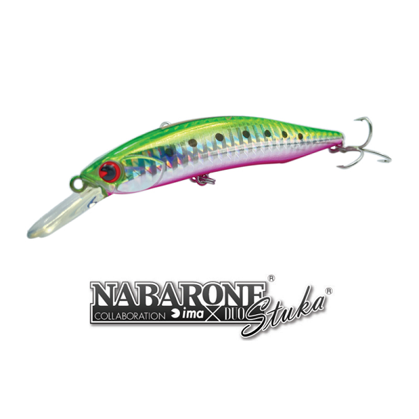 ο IMA NABARONE STUKA 9cm είναι ένα δημιούργημα της ΙΜΑ σε συνεργασία με την DUO. Είναι το πιο μικρό τεχνητό της γνωστής σειράς. Είναι βυθιζόμενο, με εσωτερικό σύστημα μετακινούμενου βάρους με μπίλιες και πραγματοποιεί πολύ καλές βολές. Μπορεί να ψαρευτεί με οποιαδήποτε ταχύτητα, ενώ έχει τρομερή δράση μέσα στο νερό, με την φοβερή κίνησή του (Rolling Motion). Διαθέτει πολύ ενισχυμένες σαλαγγιές της OWNER ST-46.